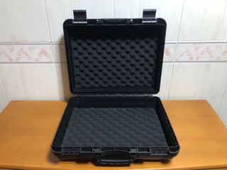 Maleta rígida muy resistente con espuma protectora interior, ideal para transportar y proteger equipos delicados como cámaras, drones, instrumentos, herramientas de precisión o material electrónico. • Medidas exteriores: 48 × 42 × 18 cm • Medidas interiores: 46 × 35 × 15 cm En muy buen estado, sin roturas ni grietas.
