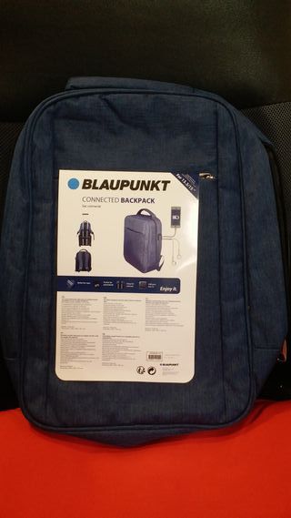 Mochila Blaupunkt Connected Backpack, ideal para viajes diarios o de negocios. Diseñada resistente y funcional. Completamente nuevo sin estrenar. Color azul tejano. Tiene un puerto usb doble en el lateral con salida para auriculares. Compartimento para ordenador. Se puede leer sus características en la foto. - Compartimento acolchado para portátil de hasta 15. - Puerto USB y salida para auriculares en el lateral. - Bolsillo interior y exterior con cremallera. - Asa para colgar en maleta.