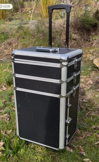 Maleta profesional con ruedas, ideal para transportar joyas y para usar en ferias. Oferta por un tiempo limitado. - Diseño robusto y elegante. - Compartimentos internos para organización. - Ruedas para fácil transporte.