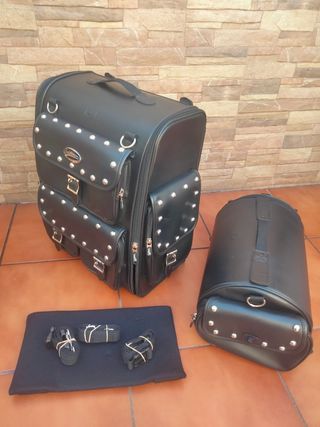 Espectacular baúl maleta De la prestigiosa marca Saddlemen modelo Desperado de luxe sisi bar Como nuevo impoluto ya que no tiene ningún uso Preciosa bolsa de respaldo con tachuelas bandeja interior graduable y 7 bolsillos exteriores Su precio ronda los 400€ Se puede ver sin compromiso y valorarlo Hago envío Antes 250€ Ahora 240 € Urge vender