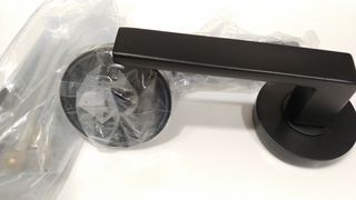 Kit de manillas con roseta para puerta. Color negro. Diametro = 63mm. *el precio en Obramat más de 20€ NUEVO MÁS MERCANCÍAS EN MI PERFIL