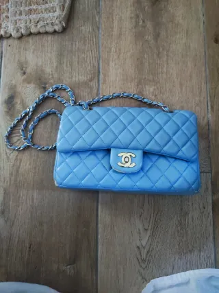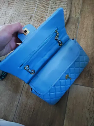 Bolso azul acolchado con cadena