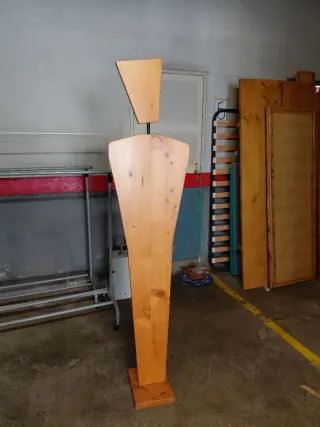 Maniquí de madera con un diseño moderno y minimalista, ideal para exhibir ropa. - Fabricado en madera. - Base de madera para mayor estabilidad.