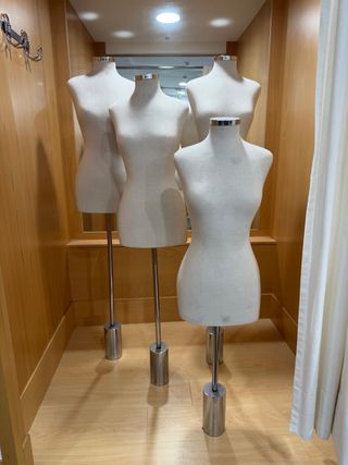 Maniquí de busto con un diseño clásico y elegante. Ideal para exhibir prendas o estudiar patronaje. - Material resistente y duradero. - Funda con cremallera lavabable. - Forma anatómica para una presentación realista. - Medidas estándar. Entrega en mano en Barcelona.