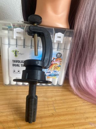 Se vende cabeza de maniquí para practicar peinados y recogidos. Ideal para estudiantes de peluquería o aficionados. - Incluye soporte con pinza para fijar a mesa. - Cabello largo y liso.