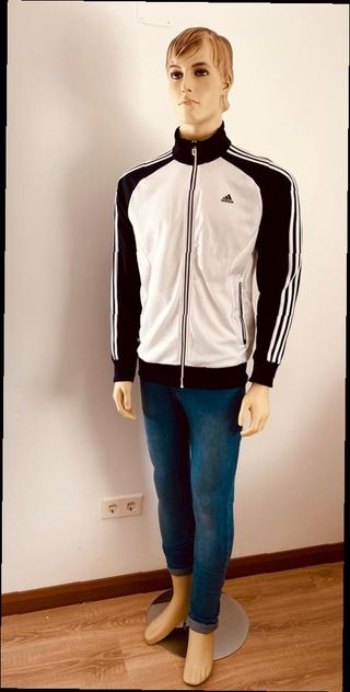 Maniquí de hombre con conjunto. - Chaqueta deportiva Adidas blanca y negra. - Pantalones vaqueros ajustados.Este maniquí de hombre realista es la elección ideal para tiendas, escaparates y exhibiciones de moda. Su diseño premium incluye cabello natural, pestañas y cejas detalladas, y una expresión facial que transmite realismo y profesionalismo. Está construido con materiales ligeros pero ultra resistentes, asegurando durabilidad y fácil manejo. Incluye una base de acero pulido, soportes y tornillería para estabilidad total. Se entrega nuevo y sin uso, cuidadosamente embalado en doble caja de seguridad. Perfecto para tiendas de rop