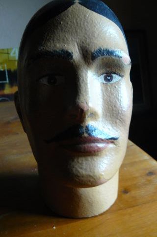 Cabeza de maniquí de hombre, ideal para sombrererías o escaparates. Mide 29 cm de alto habria que retocar un poco la pinytura. - Diseño clásico con bigote pintado. - Material resistente.