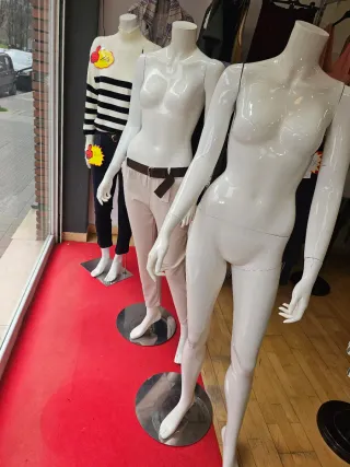 Se venden 4 maniquíes de tienda, ideales para escaparates o exposiciones. - Precio por unidad: 150 euros. - Total de maniquíes: 4.