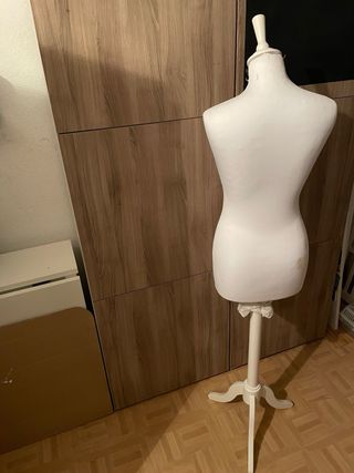 Maniquí de costura con base de madera oscura. - Color blanco. - Base de trípode de madera. - Altura ajustable. recogida cerca el metro Gran Via