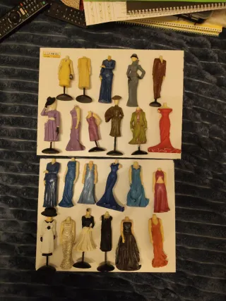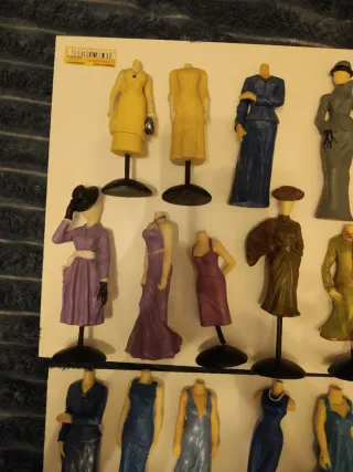 Conjunto de maniquíes de moda, ideales para coleccionistas o decoración. - Incluye 23 figuras. - Diseños variados de vestidos y trajes. - Estilo vintage.