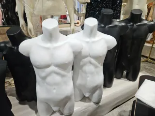 Se venden maniquíes y bustos de hombre. - Maniquí de cuerpo completo, color piel, 110€. (RESERVADO) - Maniquí de torso tela color blanco, 128€. - Maniquí de torso, color negro 50€ - Maniquí de torso con brazos color blanco, 128€. - Maniquí color plateado, 95€. - Maniquí color blanco cuerpo completo 90€ - Maniquí de torso con brazos color blanco, 100€. - Maniquí torso negro con brazos y base 105€ - Maniquí torso sobremesa plata 35€