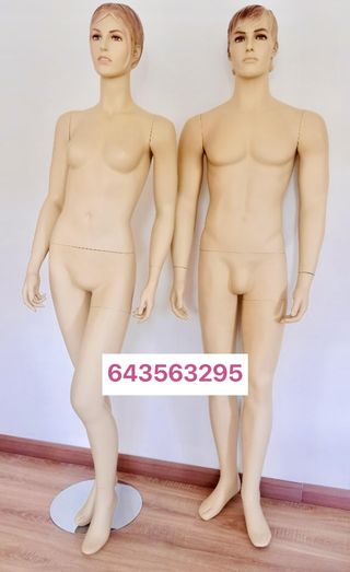 Set de maniquíes para tiendas, ideales para exhibir ropa. - Maniquí femenino. - Maniquí masculino. - Color piel.Maniquies de señorita y caballero. El de hombre 249€ por unidad, el de mujer 275€ por unidad.
