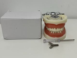 Tipodonto de dientes estándar, con 32 piezas que se pueden extraer. Es un modelo de goma suave para enseñar, practicar y estudiar. Se puede abrir más de 180° cuando practicas en un computadora o una mesa. También se adapta a maniquies y sistemas de articulación de poste y montaje. Los dientes se quitan/reemplazan fácilmente, y se utilizan para practicar técnicas de restauración, prostodoncia fija, demostración de anatomía y enseñar a los niños. -Incluye: herramientas para su uso (destornillador), caja original, placa de montaje universal y articulador de poste. *PRECIO NEGOCIABLE*