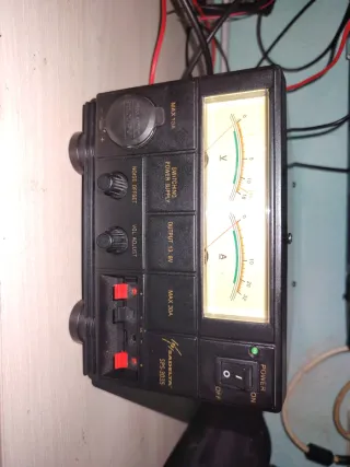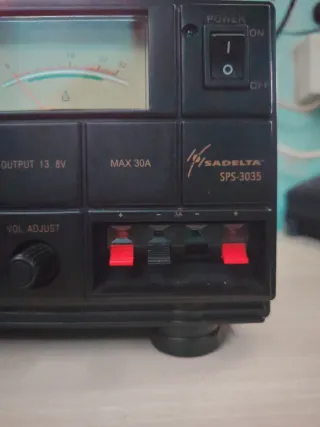 Fuente de alimentación conmutada Sadelta SPS-3035. - Salida de 13.8V. Máximo 16v ajustable - Máxima corriente de 30A. - medidor de voltaje y amperaje. - Conexión para accesorios frontal de hasta 3a, falta una paleta del negativo, tiene toma de mechero de hasta 10a funciona perfectamente
