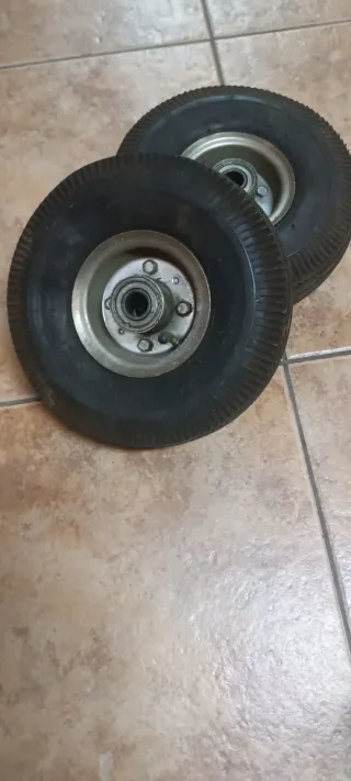 Juego de dos ruedas para carro. - Diámetro aproximado de 25 cm. - Eje con rodamientos.