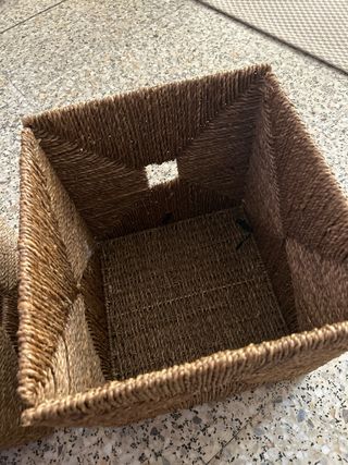 Set de dos cestas cuadradas hechas de fibra natural. Perfectas para organizar y decorar. - Material: Fibra natural. - Forma: Cuadrada. - Color: Marrón.