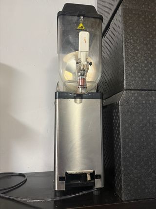 Máquina granizadora profesional con un diseño moderno y funcional. Perfecta para hostelería. Tiene algo mas de un año. - Depósito transparente de gran capacidad. - Sistema de enfriamiento eficiente. - Dispensador frontal para servir fácilmente.