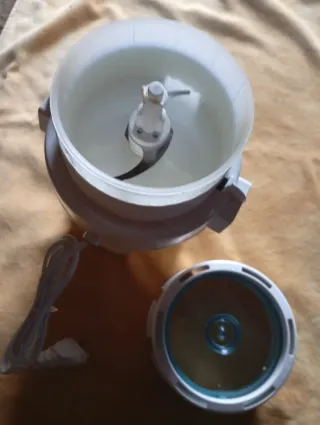 Máquina de hielo con un diseño moderno en color blanco y azul. - Tapa transparente. - Cable de alimentación incluido.