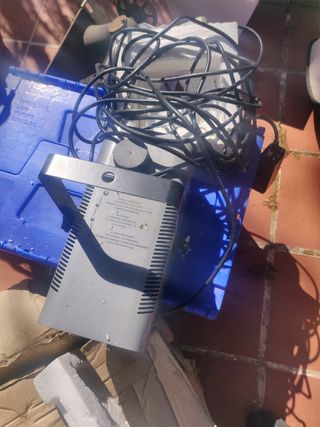 Máquina de humo utilizada para espectáculos. Hay que ponerla a punto porque no la utilizamos hace tres años. Pierde algo de agua. Funciona con agua destilada.