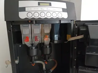 Máquina de vending para preparar café, chocolate y leche. Ideal para oficinas o negocios. - Dispensadores para Chocolate, Leche y Café. - Botones de selección para diferentes tipos de café: Corto, Largo, Cortado, Con Leche, Capuchino. - Pantalla digital informativa.