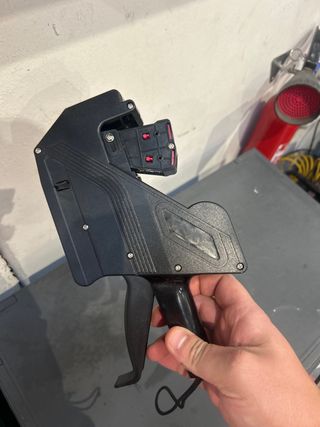 Herramienta para etiquetar precios en productos. - Diseño ergonómico en color negro. - Mecanismo para la colocación de etiquetas.