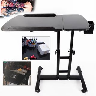 Mesa auxiliar para tatuadores con doble nivel. Ideal para tener tus materiales a mano durante las sesiones. Bandeja superior e inferior para el material: cups, agujas, tintas, guantes, maquina, etc. Soporte lateral adicional. Estructura metalica resistente. Ruedas para fácil movilidad. Estación de trabajo portatil para tatuajes. Mueble de tatuaje/tattoo. Mesa con altura ajustable. Banco con tablero de hierro. Color: negro. Materiales: hierro, plastico. Capacidad de carga: 12,5kg aprox. Estado: nueva, caja precintada. Hago envios.