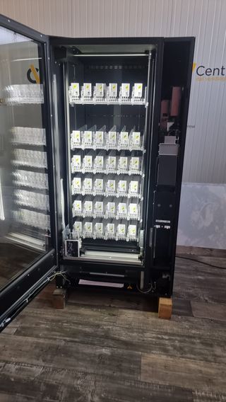 Maquina vending de bebidas frías robotica con mucha visibilidad de ultima generación con pantalla táctil , configuración intuitiva igual que un móvil,iluminación led, bajo consumo A+++,apertura de puerta automático con mando a distancia, maquina impecable casi sin uso. Esta maquina esta lista para comprar y colocar en cualquier ubicacion solo tienes que añadirla al carrito y se entregara con un video tutorial para su primera instalación. 6 MESES DE GARANTÍA SEGÚN CONTRATO DE LA WEB Medidas aprox. 1830 mm de alto x 950 mm de ancho x 860 mm de profundidad.