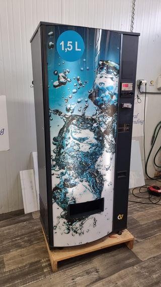 MAQUINA VENDING AGUAS 1,5L y 1 L de EXPOSICIÓN MUY NUEVA con monedero de cambio y regalo billetero Máquina vending de bebidas frías para aguas de 1,5 L y 1L con 5 canales y 10 selecciones.Revisada y lista para colocar en cualquier ubicación. Medidas aprox. 1830 mm de largo x 1010 mm de ancho x 815 mm de profundoco