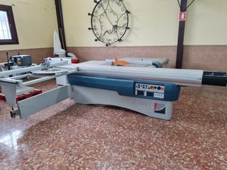 maquina de carpintería escuadradora marca scm de 2.60 de carro con incisor inclinación del disco es monofasica anda con luz de casa normativa CE está nueva prácticamente teléfono ☎️ 672397735