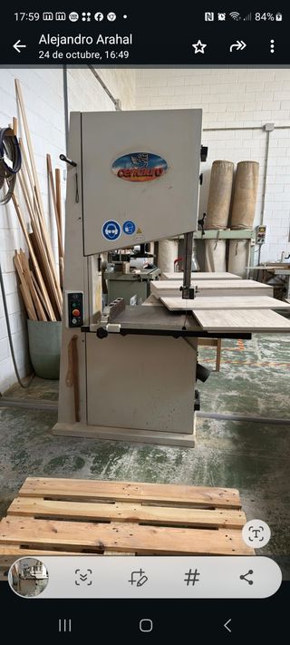 maquina de carpintería sierra de cinta marca ferruz de volante macizo 80 de diámetro 5.5 cv potencia con normativa CE escuadradora combinada tupi cepilladora regruesadora canteadora prensa teléfono ☎️ 672397735,si