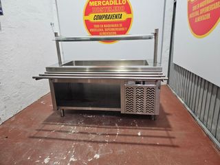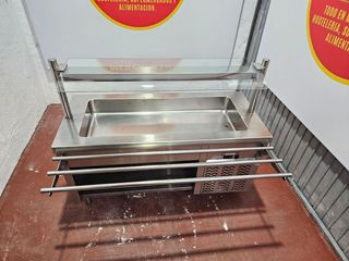 Mueble buffet refrigerado, con apenas unos meses de uso, en un estado impecable y a toda prueba. Totalmente construido en acero inoxidable, con zona de Gastrornorm fría y zona superior iluminada. Medidas 1600x70 (+30cm de la zona de apoyo de las bandejas) x la altura estandar de 85cm de alto la base. También disponemos del resto de la linea de buffet. Precio especial llevando la linea buffet completa. IVA no incluido. Toda nuestra maquinaria tiene una garantía de 1 año en repuestos para maquinaria nueva y 3 meses en segundamano. Todo en maquinaria de hostelería, supermercados y alimentación. Estamos en Torrejón de la Calzada