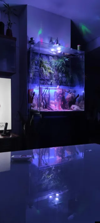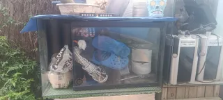 Se vende paludario o acuario. Estructura de cristal. Mesa de hierro resistente. Acuario de 160 Litros 100*40*40 Medidas totales 100* 100* 40 Está en uso . Perfecto estado