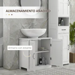 kleankin Armario de Baño Bajo Lavabo con Puerta Doble y Estante Ajustable Carga 20 kg 60x30x60 cm Blanco....MAS COSITAS EN MI PERFIL ECHALE UN OJO😉