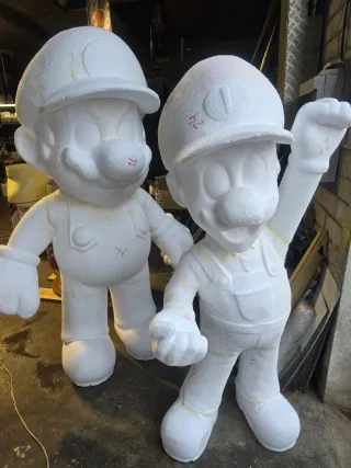 Se venden figuras de porexpan de Mario y Luigi. - Material: Porexpan (poliestireno expandido). - Personajes: Mario y Luigi.