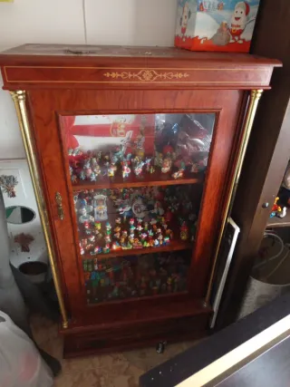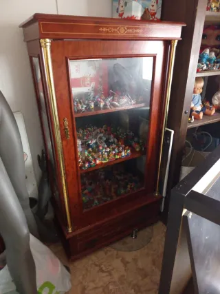 Elegante vitrina con estructura de madera y puertas de cristal.....medidas 1,30 de alto,0,70 ancho,0,38 fondo - Diseño clásico con detalles decorativos. - Ideal para exhibir colecciones o elementos decorativos.