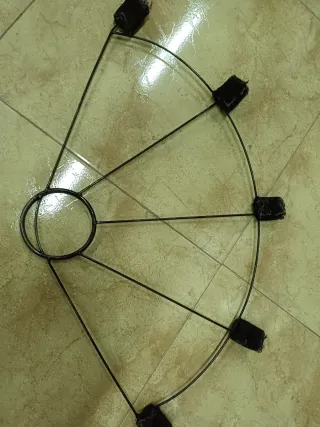 Par de abanicos de fuego para malabares. Diseñados con una estructura metálica y un aro central para sujetar. - Estructura de alambre negro. - Aro central para agarre. - 5 puntas de fuego Disponibles 2 juegos (total 4) Precio por juego.