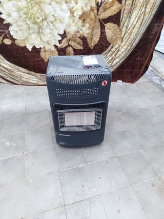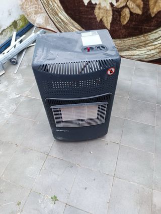 Estufa de gas portátil en color gris oscuro. Ideal para calentar espacios. - Diseño compacto y fácil de mover. - Rejilla frontal protectora. - Panel de control superior.