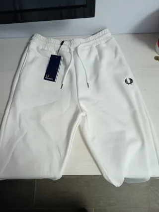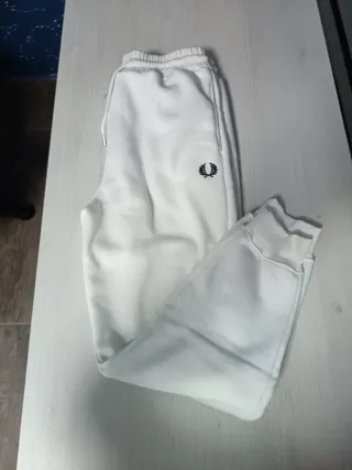 Pantalón deportivo de color blanco con el logo de Fred Perry bordado. - Talla S. - Cintura elástica con cordón. - Puños ajustados en los tobillos.