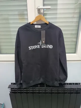 Sudadera negra de Stone Island. - Logo de Stone Island en el pecho. - Parche de la marca en la manga.