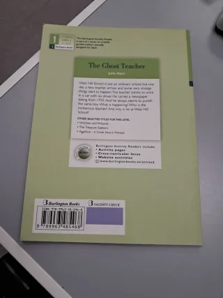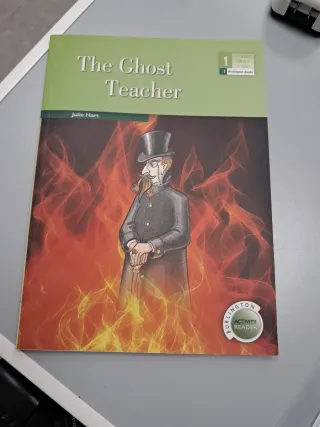 Libro de lectura The Ghost Teacher de Julie Hart, publicado por Burlington Books. - Nivel 1. - Formato de actividad. - Ilustraciones temáticas. - Están hechas las actividades a lápiz, se puede borrar.