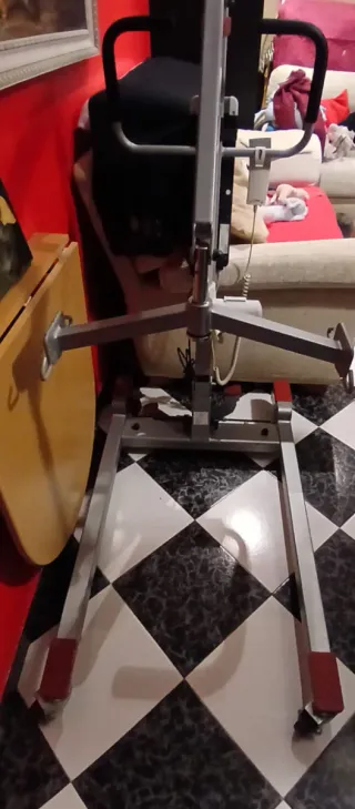 Grúa de movilidad para asistencia en el hogar. Estructura metálica resistente. - Base con ruedas para facilitar el desplazamiento. - Asas de agarre ergonómicas. - Mecanismo de elevación.