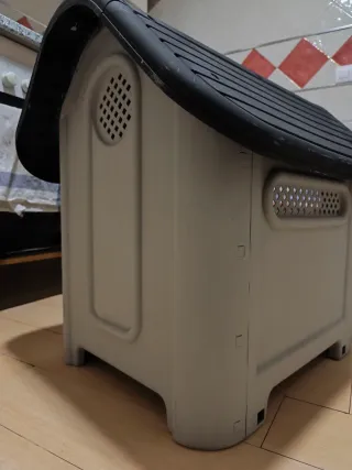 Vendo caseta para perro, está perfecta para usar, es de plástico rígido, la pinté de gris y negro, pero realmente mi perro no la utiliza.