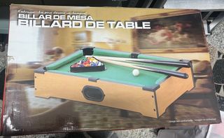 Juego de billar para montar en la mesa de casa. Ideal para jugar con niños. Está impecable ya que no tiene uso.