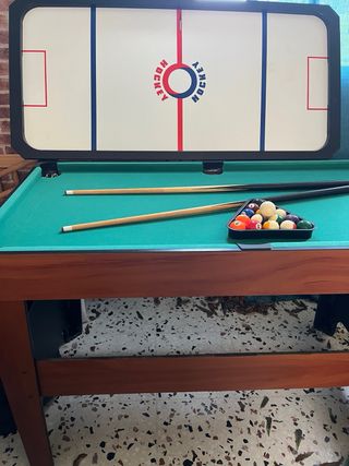 Mesa recreativa 3 en 1 para disfrutar en casa. - Superficie de billar. - Mesa de hockey. - Red de ping pong.