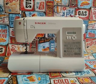 Máquina de coser Singer Brilliance 6180 en color blanco. Además de lo que se ve en las fotografías tiene libro de instrucciones y mesa extraíble, para facilitar la costura. Mide de alto 20,5 cm x 42 cm de ancho y 31 cm de fondo. Pesa 6,2 kg, lo que la hace fácil de transportar. Ha sido usada, pero se halla en optimas condiciones. Cose con cualquier hilo, si bien la calidad del hilo se nota, haciéndose más cómoda la costura, con un hilo de buena calidad. - Incluye pedal.