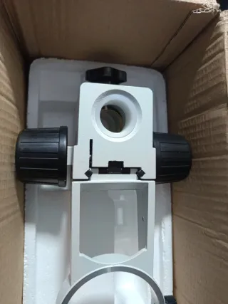 Microscopio óptico de color gris claro con base negra. - Lente objetivo. WF16X WF30X y 2X - Tubo de visión. - Base estable. Más información en las fotos. Nuevo en caja