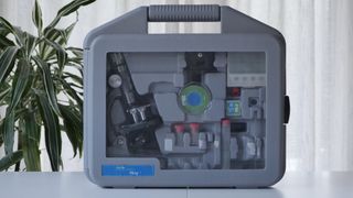 Maletín de microscopio Eduland Deluxe, ideal para iniciarse en la ciencia. - Incluye microscopio azul. - Contiene accesorios para experimentos. - Maletín de transporte gris.