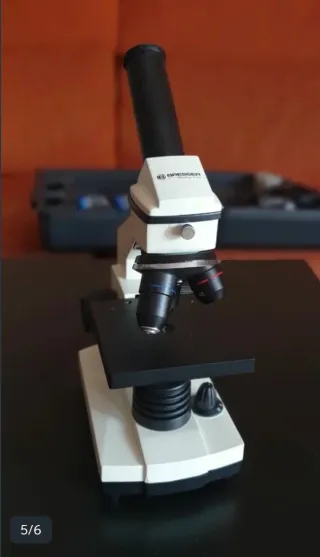 microscopio binocular EcoBlue de Euromex está diseñado para aplicaciones educativas y de laboratorio, ofreciendo una combinación de ergonomía, calidad óptica y durabilidad. Esta nuevo, apenas con un par de usos, se vende por falta de uso. Se vende con el materia que se ve en l foto, pipetas, slides.... características técnicas principales: Óptica: • Oculares: WF 10x/18 mm. • Objetivos acromáticos: 4x/0.10, 10x/0.25, S40x/0.65 (retráctil) y S100x/1.25 (retráctil, inmersión en aceite). • Tratamiento anti-hongos y revestimiento multicapa para una mayor transmisión de luz. Cabezal: • Tipo binocular Siedentopf, inclinado a 30° y rotación de 360°. • Ajuste de distancia interpupilar entre 48 y 75 mm. • Corrección de dioptrías de ±5 en el portaocular izquierdo. Platina: • Dimensiones de 123 x 119 mm con pinzas para sujetar muestras. • Opcionalmente, platina mecánica integrada con desplazamiento X-Y de 70 x 27 mm. Enfoque: • Mandos coaxiales de enfoque macro y micrométrico. • Ajuste micrométrico con 200 graduaciones, desplazamiento de 12.5 µm por graduación y 2.5 mm por rotación. • Sistema de seguridad para limitar la altura de la platina y proteger las muestras y los objetivos. Condensador: • Tipo Abbe con apertura numérica (A.N.) de 1.25. • Ajustable en altura, con diafragma iris y anillo portafiltros. Iluminación: • Sistema LED de 1 W con intensidad regulable. • Alimentación mediante adaptador de 100-240 V.