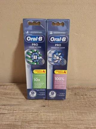 Pack de 8 cabezales de recambio para cepillo de dientes Oral-B PRO. Tengo mas modelos en mi perfil - Incluye 4 cabezales Oral-B PRO Sensitive Clean. - Incluye 4 cabezales Oral-B PRO Cross Action. - Formato Eco x4 en ambos paquetes.