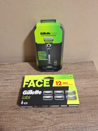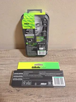 Set de afeitado Gillette Labs con maquinilla y recambios. - Maquinilla de afeitar con barra exfoliante. Con 2 recambios - Incluye 6 hojas de recambio. - Presentación en caja original.